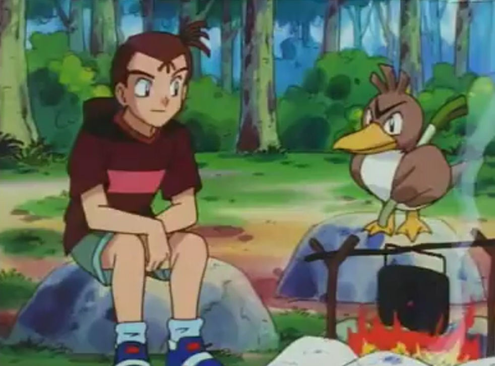 Summary: Ash and his friends are chilling in the meadow, Brock is polishing his egg, the gang talks about a Farfetch’d citing. Ash and Brock chirp out, just in time for a Farfetch’d to come and lure Misty into the forest, only to run into a con artist. The guy and Farfetch’d are in cahoots, and Misty has lost all of her Pokémon. The con-artist, Keith, makes a deal with Team Rocket to give them his Pokémon, and even leaves his bird buddy behind with a getaway boat. The boat was rigged, and Farfetch’d scoops up all of Misty’s and Team Rocket’s Pokémon. Team Rocket is on the chase, the gang gets Officer Jenny’s help, but Psyduck gets away takes our heroes to Keith. Team Rocket finds Keith, demands their Pokémon back and Keith gives them dummy balls. Misty and the gang confront Keith, challenging him to a battle. Farfetch’d faces Bulbasaur, and gets wrecked, until it starts using its agility to win the battle. Keith’s doubts about Farfetch’d are assuaged, and Misty challenges Keith to a battle. Psyduck gets beat over the head with Farfetch’d’s leek, activating Psyduck’s Disable attack. Keith is sorry, and decides to give back all of the Pokémon, Keith gets off easy having learned his lesson.