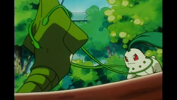 Summary: Ash is ready to battle the Azalea gym leader, and Misty remarks that he does not have Charizard, his ace, anymore. The gang walks into the gym, and Misty gets scared by a bevy of bug Pokémon. A boy is in the tree, calls Misty ignorant, and accepts Ash’s gym challenge. Team Rocket goes in the gym but gets quickly dispatched. Bugsy sends out his Spinarak first while Ash sends out Cyndaquil. Spinarak goes hard on the String Shot, and glues its feet. Cyndaquil’s Flamethrower doesn’t kick in, and Ash calls it back. Ash sends out his Chikorita, who is supposed to win on guts alone. Spinarak starts to swing from tree to tree, avoiding Chikorita. Chikorita’s Vine Whip doesn’t work, but its Razor Leaf stops its Poison Sting, and a Sweet scent and Tackle combo stops Spinarak in its tracks. Bugsy sends out Metapod, which is impervious to Chikorita’s Vine Whip and Razor Leaf attacks. Metapod’s Tackle knocks out Chikorita. Ash sends out Pikachu, who whacks Pikachu. This cocoon is fast. Pikachu senses it and dodges it, giving it a Thunderbolt that sends it back to Bugsy’s ball. Bugsy sends out his Scyther, and Pikachu starts the battle of what a thunderbolt that sends Team Rocket, who dug into the battlefield, into the ground. Scyther uses Fury Cutter, and Pikachu is knocked out. Ash sends Cyndaquil out, and its flame kicks in just in time. Scyther uses Fury Attack and Swords Dance to avoid Cyndaquil’s flame. Bugsy taunts Ash for his lack of success with Cyndaquil’s flame, but Ash has a plan to dive bomb into Scyther’s Swords Dance and light this mantis up with flames before it knocks it out with a Tackle attack. Ash has his second badge! But before they leave Azalea town, Mazie gives Ash and Misty their balls back from Kurt.