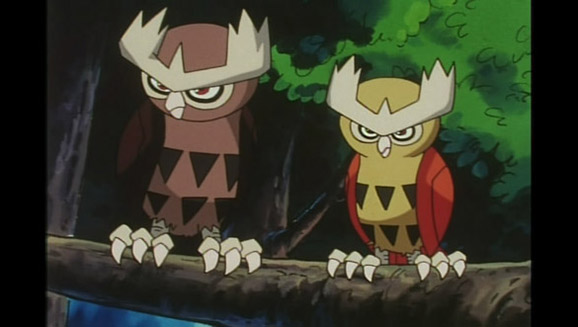 Summary: Ash has his sights set on a Noctowl, the evolved form of Hoothoot. Another guy, Dr. Wiseman, does as well. Ash is enamored by the different coloration of Dr. Wiseman’s Noctowl. He has had a real trouble catching it. Even though it is smaller than the average Noctowl, it is extra sneaky. Ash is motivated even more to capture it now, and Noctowl hastily throws the Pokeball pack at Ash. Our friends go to Dr. Wiseman’s place, and he doubts that Ash will have any success catching Noctowl. Dr. Wiseman has a secret contraption which is supposed to catch the bird, which only half succeeds. Noctowl looks into Dr. Wiseman’s mirror, hypnotizing itself, but also getting through to Dr. Wiseman. Team Rocket snaps everyone to attention when they land in their mega Noctowl. They try and catch Noctowl, but blow it right into Dr. Wiseman’s arms. Team Rocket catches both the doctor and Noctowl, but Chikorita and Bulbasaur hold the machine back while Ash tries to set Noctowl free from their grasp. Psyduck tries to help but it can’t activate its psychic powers. Ash is able to pry Noctowl free, and Noctowl organizes Ash’s Pokémon to attack Team Rocket’s robot. First Cyndaquil burns the robot, then Totodile cools it, causing it to crack from the expansion and contraction. Ash sends Pikachu out to send Team Rocket flying. Noctowl wants Ash to challenge it to battle, and Dr. Wiseman finally gives in and lets Ash battle it. Ash sends out Pikachu, but Noctowl uses its Hypnosis to send it off course. Pikachu knocks itself back into action, only to have to avoid Noctowl’s Tackle. Ash gets Pikachu to use its ears to locate Noctowl. Pikachu si able to knock Noctowl down, and Ash has a new buddy to the team.