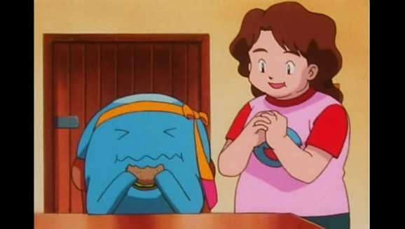 Summary: Our friends are about to head further towards Ecruteak City, but they are suddenly surrounded by Wobbuffet. Our friends find the Wobbuffet festival, and so do Team Rocket. Team Rocket gets treated to a whole meal due to their Wobbuffet. The person who takes Wobbuffet in gives it a headband to distinguish it. The Wobbuffet all over town start to get attacked by a group of fighting Pokémon trainers who terrorized the town the year before, until Lulu, the woman who served Team Rocket, kicked their ass. The group won’t go anywhere until they beat every Wobbuffet. Meanwhile, Team Rocket starts pilfering the food storage. Ash decides to challenge them, but this breaks the spirit of the festival. The battle stops before it starts, because Officer Jenny tells them they cannot battle during the Wobbuffet Festival. The gang decides to take their aggression on the Wobbuffet statue in the center of town. Team Rocket decides to get involved after they decide they can’t morally stand being on the sidelines. Team Rocket start to attack the Fighting Pokémon, and with a little confidence end up dispatching them. Wobbuffet’s Counter causes all sorts of problems for the gang. Once the gang is gone, team Rocket is back to their old ways, but get blown up by Ash and Pikachu. The loot Team Rocket took is returned, and the festival is saved.