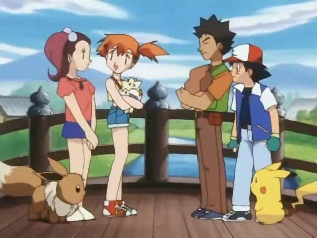 Summary: Our friends decide to go to a tea ceremony, when an Eevee comes and stops by our friends. The Eevee is owned by Sakura, who tells our friends that her sisters run the tea ceremony, what a coincidence. Our friends follow Sakura, where they see all of her sisters in their Kimono, teaching Ikebana among other things, Brock is smitten with all of them. Brock has visions of marriage, while Misty is just trying to get him off of their backs. Misty and Sakura bond over being the younger sister to beautiful older sisters. Jessie and James are dressed up for tea, but when they make a ruckus after hating the cookies, they attack Eevee and our gang’s Pokémon but are blasted away. Now our friends are relaxing, Sakura and Misty talk about Sakura’s wish to start her Pokémon journey with the gang. Sakura is allowed to go with the gang if they all beat her sisters in a gym battle. It’s Poliwhirl vs. Vaporean, they trade attacks each sending out strong attacks, with Vaporean’s Aurora Beam knocking out Poliwhirl. Next, it’s Pikachu vs. Jolteon, but before they can start Team Rocket shows up with an odd box thing. They attack Eevee and the other Eeeveeloutions, but Ash sends out Chikorita against Victrebell. Staryu comes out and throws James and Arbok into a cell, HYUUUU!. Chikorita sends Jessie and Victrebell in a cell, while Umbreon sends Meowth and Team Rocket flying while rescuing Eevee. Ash resumes the match, and Pikachu beats Jolteon. Sakura decides to stay and train in Ecruteak City, and our friends decide to go to Olivine City for the beach.