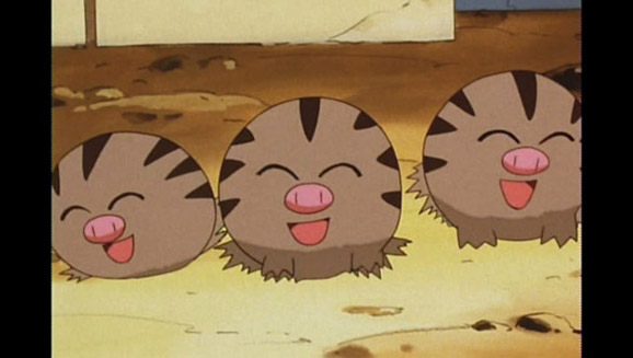 Summary: Our friends and Todd walk near a mountain, stop for a bite, and three Swinub nab Misty’s grub. A little girl named Peggy runs in and chastises the Swinub. Her dad, Rory, is a hot spring digger who uses his Swinub to locate hot springs, and Graveler digs for it. Jessie hears about the hot spring and fantasizes about a day of leisure. Team Rocket shows up to offer some help, but they have no luck finding hot springs. Team Rocket decide to steal the Swinub and Graveler, but Peggy finds them out and the gang chases after them. Our friends ride a sled down the mountain to chase Team Rocket, and Tracy misses the perfect shot of the Articuno. Team Rocket finds oil in the mountains, and wait, do you hear that, George Bush just called in and commanded Team Rocket to give it up. Team Rocket thinks they made it rich, but they just punched an oil company pipeline. Our friends catch up to Team Rocket, the Swinub leave Team Rocket’s custody and start to get really angry. Rory tells Team Rocket that the Swinub want to battle. They battle Wobbuffet and Arbok, and Jessie tries to get some modeling shots in. Poliwhirl helps with Weezing’s Smokescreen, and a Swinub Powder Snow Poliwhirl water Gun combo send team Rocket flying. The Swinub find a hot spring… next to an oil line, this might be dangerous, but hey Rory is going to make some money. Our friends say goodbye to the family whole Todd takes their picture, what a shutterbug.