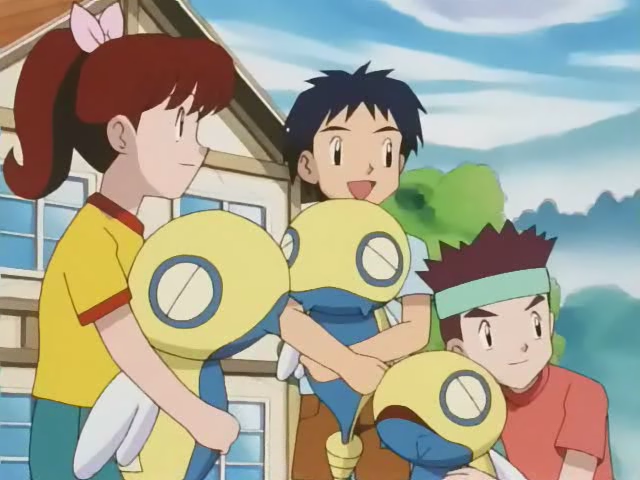Summary: Our friends are walking into a small town when they see someone hunting Dunsparce with a net. The boy’s name is Bucky, and he wants one so he can hang out with all of his classmates who have one. All of these kids are going crazy over Dunsparce, I wonder what it is about these Pokémon. All they do is eat, sleep, and shit according to the kids, and fly sometimes. The kids have all of their Dunsparce race, while bucky has his Caterpie in the race. Bucky’s Caterpie struggles in the race, and Team Rocket looks from behind the bushes. Some of the kids stick up for Bucky for not having a Dunsparce, and Bucky loves his Caterpie. Ash sends out his Noctowl, Chikorita, and Totodile, and Poliwhirl and Golbat also come out to help find Bucky a Dunsparce. Togepi is able to find a Dunsparce in no time, but Bucky’s reactions are too slow to catch it. Team Rocket sends a net down and catches four of the gang’s Pokémon, including Pikachu. Ash sends out Cyndaquil to burn the net down, while Poliwhirl uses their Water Gun, and Cyndaquil uses another Flamethrower to send them flying, but they catch a Dunsparce in the process. Bucky has a great attitude about missing the Dunsparce. Team Rocket wants all of the Dunsparce from the kids, they can never settle. They put on a show, with James as a sad Moltres and Meowth as a Dunsparce, but the kids hate the show. When they offer a Moltres for Dunsparce trade, all the kids bite. Bucky doesn’t quit looking, and finds the kids who have been tricked out of their Pokémon. Bucky asks Ash to help his friends, while Team Rocket has a hard time keeping them in their possession. Ash fights Team Rocket with the help of Misty, double teaming Wobbuffet so it can’t use two Counter attacks. The Dunsparce leave to the kids after battling Arbok. Caterpie fights Dunsparce, slowing it enough to catch it. Everyone says goodbye.