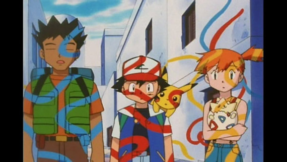 Summary: Our friends make it to Whitestone, and Team Rocket adores the marble. As they walk into the town they run into a group of Smeargle drawing all over the town. The Smeargle are chased by a group of rioters. In the group, an old man named Jack Pollackson pipes up and claims the Smeargle as his, and he gives the group a blank check for repairs in the city. A reporter runs in and tries to make a documentary about the town, but shifts the focus to Jack Pollackson. Jack says that the Smeargle are his paint brushes, and as they paint on Ash and their friends Jack says they are crafting a masterpiece. Our friends are given some lessons, that everyone is born with the ability to like art, but to make art is a special skill. Jack wants the Smeargle to make a piece of art that harkens back to the old heyday of his art. Jack shows our heroes is most prized painting. The reporters sneak into the house and decide not to film the painting, while Team Rocket swoops in and stops cold because they are moved. Team Rocket takes a picture of the painting, and Jack doesn’t care. Team Rocket prints out a picture of the artwork, Jessie hates it, and James says if Andy Warhol can do it anyone can. Jessie wants to steal the Smeargle for themselves. Jack tells our friends about how the Smeargle’s art changes with their emotions. Team Rocket pilfers the Smeargle, but they leave a trail for the gang and Jack. The Smeargle are afraid, and Team Rocket makes them complete some canvases. Our gang approaches the Smeargle who leave their battle to make a picture of the sunset. Team Rocket lets them leave. The Smeargle make another great painting of the town, and the rain washes it away. Our friend say goodbye to Jack.