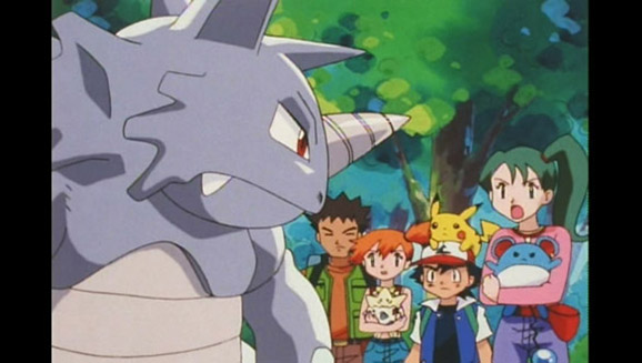 Summary: Our heroes are sleeping by the lake when a swimming Rhydon jumps out of the water to Ash’s surprise, huh?! Misty and Brock don’t believe his story until a woman named Pietra confirms Ash’s story. Pietra takes our heroes to a mountain pass where she is trying to make a tunnel for easier transportation, but the water in the cave is making it hard for her Pokemon to finish the job. Brock tries Onix but the water scared him as well, so our heroes look for Rhydon by following his tracks, right into the lake. Meanwhile, Team Rocket lies in wait to steal the Rhydon for their own purposes but get distracted by a pile of delicious apples. These apples are Rhydon’s, and when they find Team Rocket they get enraged. Pietra tries to battle it but it escapes into the lake, so they follow it in a boat. Totodile swims a backstroke right into Rhydon, who engages our heroes in a fight to no avail. Team Rocket sets a trap by the apples, only for Wobbuffet to fall right in. They use the old net attached to the balloon trick, but Crobat, Pikachu, and Bulbasaur help free our new horned friend. Pietra goes 1v1 with Rhydon who drags her into the bottom of the lake, then jumps in and out of the lake, and Pietra exhibits a PBR bull-riding level effort to earn Rhydon’s respect, which she finally receives. Rhydon faces Marill, a few Bubblebeams and Tackles later Pietra tries to catch Rhydon, but they pop out of the ball. Finally, Pietra gets her Rhydon with Marill’s strong Iron Tail attack. Rhydon helps Pietra finally drill to the other side of the mountain, and our heroes say goodbye.