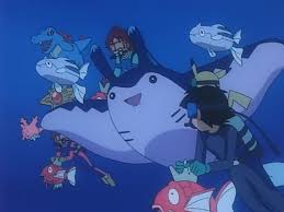 Summary: Our heroes, per usual, are running late to a ferry and meet a girl named Luca who is researching aquatic life. Our heroes join her and Ash questions what Luca is looking for, she explains that she is researching Water Pokemon like her great grandfather who is looking for the Silver Wing, a clue leading to a mysterious Pokemon. Ash wonders if it is the same one he saw (BINGO!). Ash and Luca dive down with the help of some Magikarp and see Horsea, Tentacruel, etc. as they go to the ship. A Mantine is floating around the ship scaring off all of the Magikarp, so they go above water to regroup, opting to take Pikachu down to scare the Mantine off. As the approach the ship Mantine tries to scare them off but Luca is able to sneak in while Ash distracts them. However, a Remoraid issues a Water Gun on both Ash outside the boat, with another one coming for Luca from inside the ship. Luca and Ash are scared off again. Meanwhile, Team Rocket views all this action, looking to steal the treasure and capture Mantine. Misty and Ash decide to use their full assortment of Water Pokemon, including Corsola and Staryu, HYUUUU. Team Rocket distracts the Mantine so Luca and Ash can enter the ship with Misty, finding baby Remoraid in a nest in the middle of the ship, now we know why they are protecting the ship. Team Rocket crashes into the ship and Luca finds the treasure chest, Team Rocket attacks everyone in sight for the chest and the Mantine. After Mantine frees itself, Ash and Mantine chase after Team Rocket with Pikachu shocking them into orbit. The Silver Wing is acquired, fulfilling Luca’s dream. Luca takes out heroes to Red Rock Isle, the home of the competition.