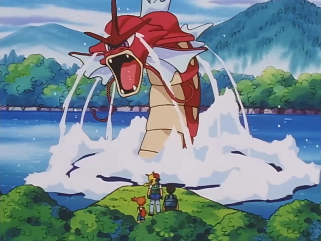 Summary: Our heroes walk into a forest of Lake of Rage, where there are Pokemon who are sick, as Pikachu and Togepi both feel the same way. They run to the lake and see a red Gyrados jump out of the water. Team Rocket appears after admitting that our heroes shouldn’t have seen that Gyrados, the Rocket admin brings out his Fearow, Ash brings a Totodile (who also feels sick), and right before Fearow makes a critical hit, a red-haired and his Dragonite stop Team Rocket and flees. Misty makes the guy out to be Lance, a member of the Pokemon G-Men, a detective who sees who improperly treats Pokemon. Ash wants to help but Lance stops them from helping. Gyrados is sick laying at the bottom of the lake while Team Rocket complain about being hungry, as they view a barn where inside, Prof. Sebastian of Team Rocket explains how they evolved a Magikarp into a shiny Gyrados with science. Team Rocket walks through the halls of the barn, get locked in by the Rockets in the barn, and tries to explain that they are part of the same group, even if they were demoted to rookie status and have zero contribution. However, the Rocket boss says that for food they will seek their assistance for Project R, a cutting-edge science. Team Rocket asks the gang to capture the red Gyrados, which they happily accept. Lance goes incognito at the facility as our heroes walk to Mahogany Town, Ash refuses to go to Mahogany because he wants to help the Gyrados. Team Rocket dives down to get the Gyrados, with Jessie and Meowth trying to shirk their duty. James goes in for the capture, but Gyrados chases them above water and Gyrados gets caught into an industrial net. Our heroes find their way back to the Lake of Rage, sending Totodile and Poliwhirl to go and help free Gyrados. Just as they find the net, Prof. Sebastian orders the evolution inducement wave to start, making the Pokemon sick as they battle the evolutionary waves. As our heroes figure out the technology, Team Rocket captures Gyrados and our heroes, locking them up for the second time this season. Prof. Sebastian, like every bad guy, explains the whole plan about how Team Rocket wants to induce evolution onto Pokemon to force them to evolve, but can also be used to drain Pokemon energy. Our heroes are locked up, Team Rocket is munching on grub, and the Gyrados is being transported off-site.
